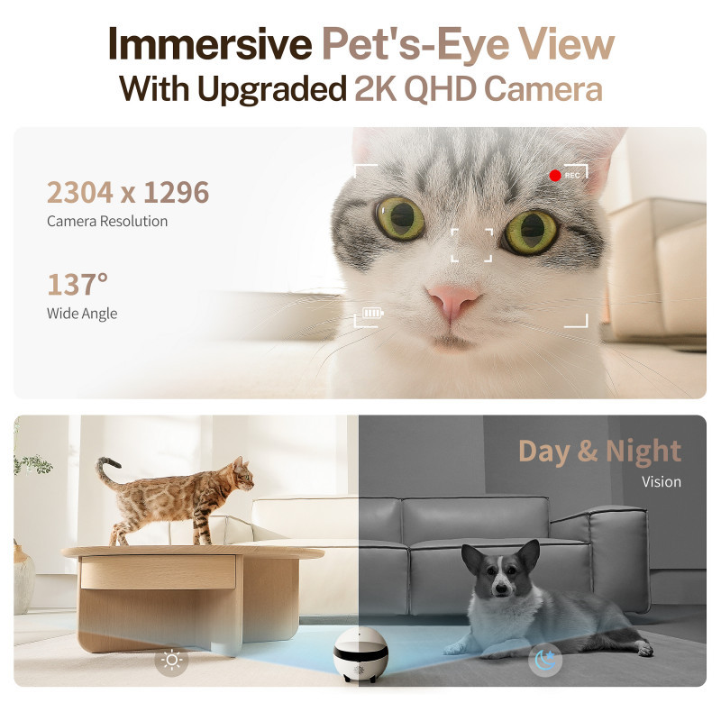 Experience Immersive Pet's-Eye View with Upgraded 2K QHD Camera.