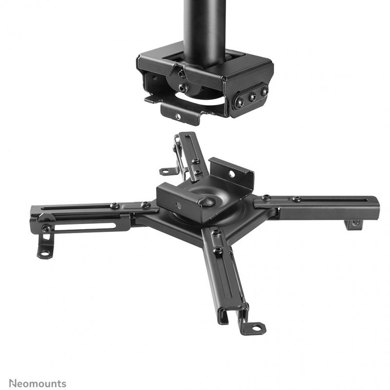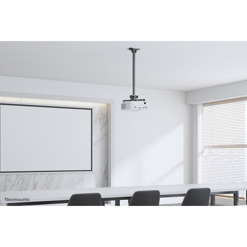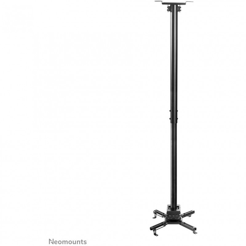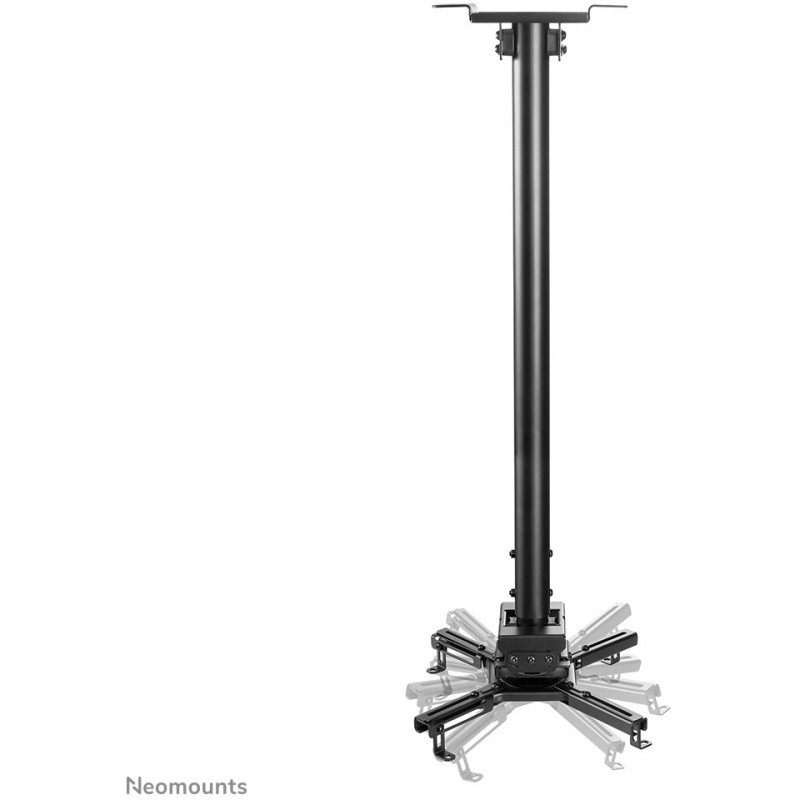 "Neomounts CL25-550BL1 Beamer ceiling mount - h 74,5-114,5 cm - easy-install - full motion. Mounting type: Ceiling, Maximum weight capacity: 35 kg, Product colour: Black. Width: 470 mm, Height: 1145 mm, Depth: 470 mm. Country of origin: China. Quantity per pack: 1 pc(s), Products per master (outer) case: 4 pc(s), Master (outer) case net weight: 14.8 kg. Package net weight: 4.9 kg"\n"The Neomounts CL25-550BL1 is a universal projector ceiling mount. Because of the high weight capacity up to 35 kg and the various adjustment options, this projector ceiling mount is widely applicable. The CL25-550BL1 has four extendable arms and the versatile tilt (+20°, -20°), rotate (360°) and swivel (+8°, -8°) technology, provides optimal placement of the projection on any canvas, screen or wall. The support is also adjustable in height from 74,5 to 114,5 cm.