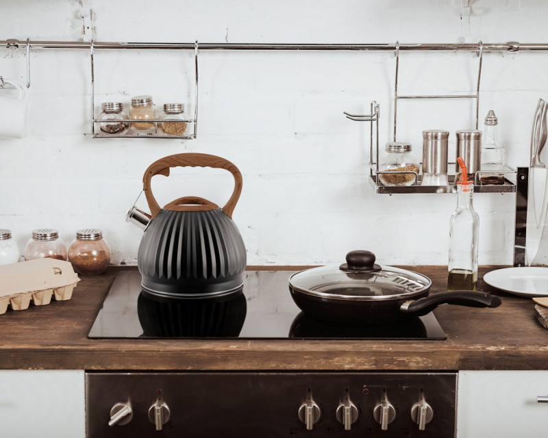 PROMIS virdulys 3,0 l, FABIO, juodas, medinė rankena