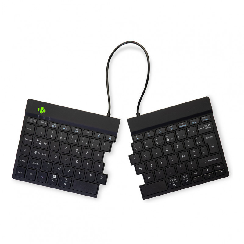 "R-Go Tools Ergonomic keyboard R-Go Split Break with break software, ergonomic split keyboard, AZERTY (FR), Bluetooth, black. Keyboard form factor: Mini. Keyboard style: Straight. Connectivity technology: Wireless, Device interface: Bluetooth, Keyboard key switch: Scissor key switch, Keyboard layout: AZERTY. Cable length: 1.02 m. Recommended usage: Office. Product colour: Black"\n"The R-Go Split Break keyboard is an ergonomic split keyboard with integrated break software. This keyboard encourages you to take regular breaks. This keeps your body's blood flowing, prevents strain and keeps you fit during your working day. The keyboard consists of two separate parts, which you can place in any arrangement you like. This splitting prevents a kink in the wrists while typing. Typing with straight wrists reduces muscle tension and prevents pinching of tendons and blood vessels. The built-in magnet allows you to turn the two separate parts of the keyboard into a compact keyboard with one move. The compact size ensures that the mouse is always within reach. The light keystroke means minimal muscle tension is present while typing. The keyboard is flat, keeping your hands and wrists flat and relaxed while typing. LED colour signals in the keyboard indicate how healthy you are working and when it is time for a break. As you type, the light changes colour, like a traffic light. Green means ‘good job’, orange that it is time for a break, red that you have been working too long. Through these subtle colour signals, you receive feedback on your pause behaviour in a simple and positive way. This product works with the R-Go Break Software that won the Benelux Office Product Award 2021."