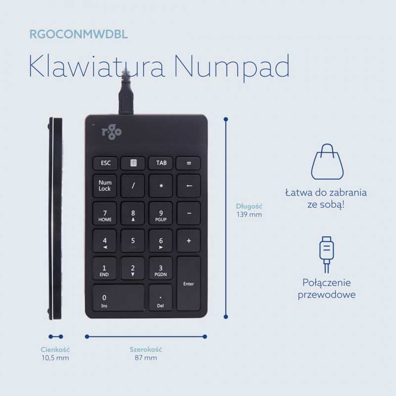 R-Go Tools RGOCONMWDBL skaičių klaviatūra Universalus USB Juoda