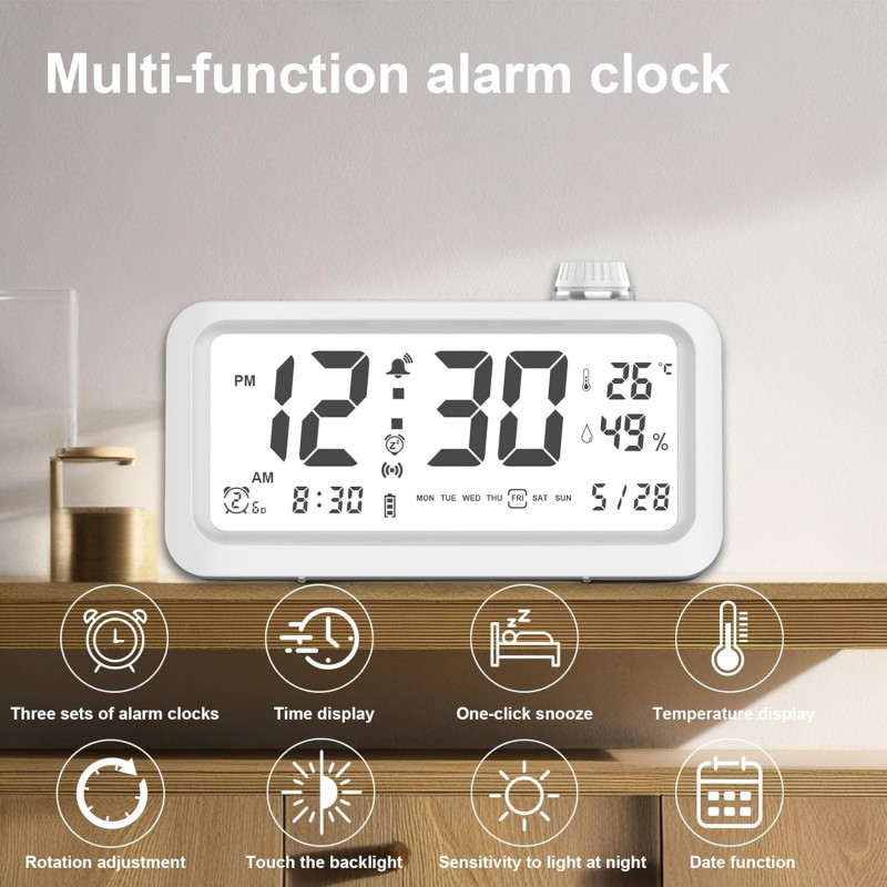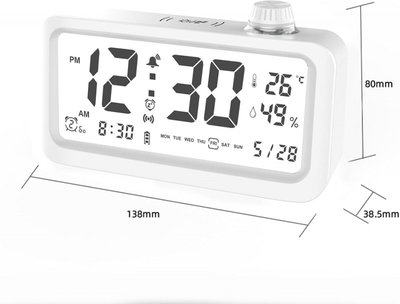 Laikrodyje integruotas žadintuvas su snaudimo funkcija („snooze“) – patogu nustatyti laiką prabudimui ir laikinai jį pristabdyti.