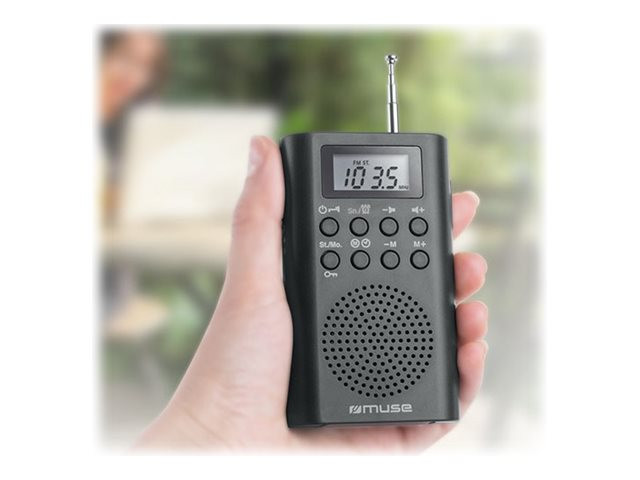 PLL Radio with 20 FM preset stations. Manual/Automatic search. Wake up by Radio or Buzzer. Alarm, snooze and sleep function. FM rod antenna. Built-in Speaker |
