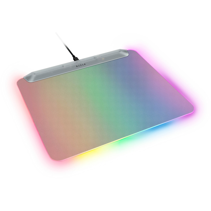 "Razer Firefly V2 Pro. Width: 360 mm, Depth: 278 mm. Product colour: White, Surface coloration: Monochromatic, USB powered, Backlight colour: RGB, Non-slip base, Gaming mouse pad"\n"Swipe and glide to RGB glory on the Razer Firefly V2 Pro—the world’s first LED backlit gaming mouse mat. Armed with 15 individually customizable lighting zones powered by Razer Chroma RGB, get the perfect upgrade to your Chroma battlestation with the brightest RGB accessory."