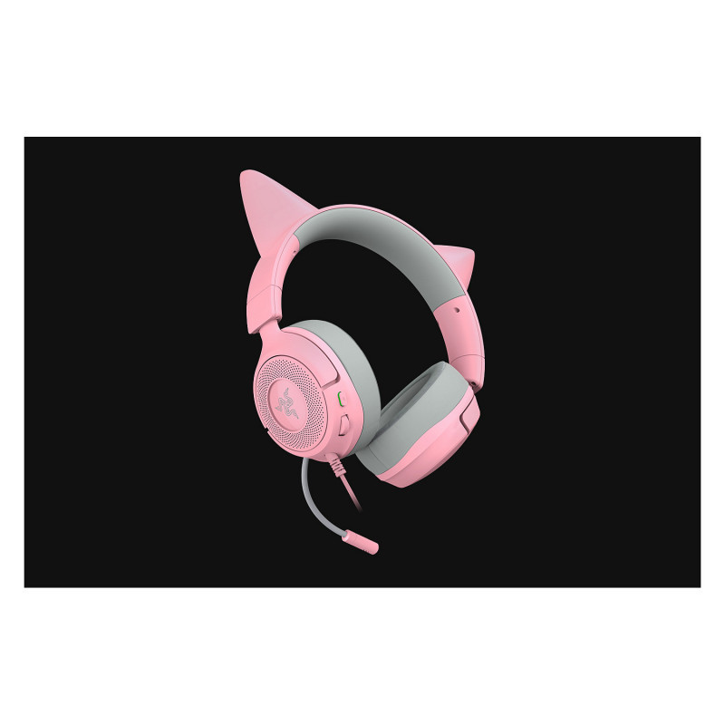 "Razer Kraken Kitty V3 X. Product type: Headset. Connectivity technology: Wired. Recommended usage: Gaming. Headphone frequency: 20 - 28000 Hz. Cable length: 1.3 m. Weight: 270 g. Product colour: Pink"\n"THE MEOW FACTOR