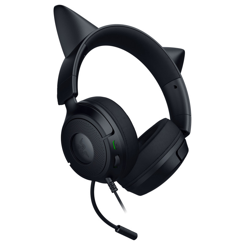 "Razer Kraken Kitty V3 X. Product type: Headset. Connectivity technology: Wired. Recommended usage: Gaming. Headphone frequency: 20 - 28000 Hz. Cable length: 1.3 m. Weight: 270 g. Product colour: Black"\n"THE MEOW FACTOR