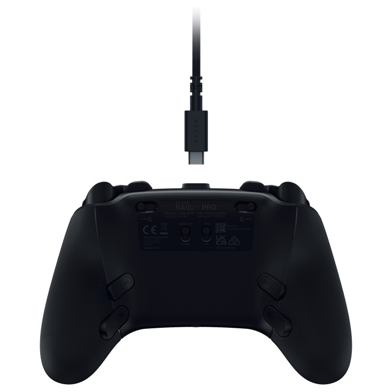 "Razer Raiju V3 Pro. Device type: Gamepad, Gaming platforms supported: PC, PlayStation 5, Gaming control function buttons: Back button, D-pad, Microphone mute button, Mode button, Options button. Connectivity technology: Wired & Wireless, Device interface: RF/USB, USB connector type: USB Type-C. Product colour: Black, Cable length: 2 m. Power source: Cable/Battery, Battery type: Built-in, Battery life (max): 36 h. Windows operating systems supported: Windows 11"\n"RAZER RAIJU V3 PRO
