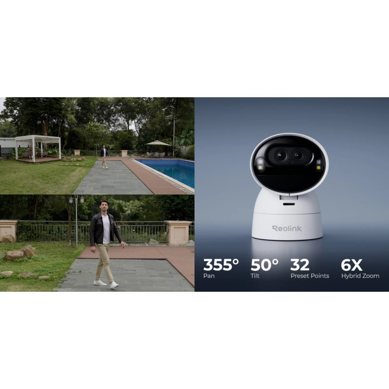 "Reolink Argus Series B740X. Type: IP security camera, Placement supported: Indoor & outdoor, Connectivity technology: Wireless. Mounting type: Ceiling/wall, Product colour: Black, White, Form factor: Tower. Tilt angle range: 0 - 50°, Pan range: 0 - 355°. Sensor type: CMOS, Optical sensor size: 25.4 / 2.7 mm (1 / 2.7""). Detect distance (wide): 11 m"\n"Auto-Zoom Tracking