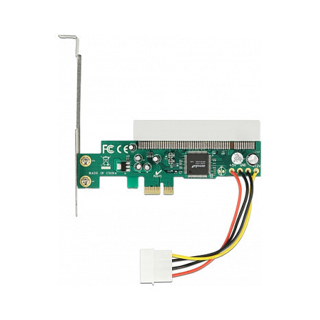 "DeLOCK Riser Card PCI Express x1 to 1 x PCI 32 Bit 5 V Slot Asmedia. Host interface: PCIe, Output interface: PCI. Country of origin: China. Windows operating systems supported: Windows 10, Windows 8.1, Server operating systems supported: Windows Server 2019. Quantity per pack: 1 pc(s), Package type: Box"\n"The PCI Express riser card by Delock enables the connection of one PCI card via one PCI Express interface. The recess in the slot bracket allows an external connection of e.g. cables to the built-in PCI card in the computer case."