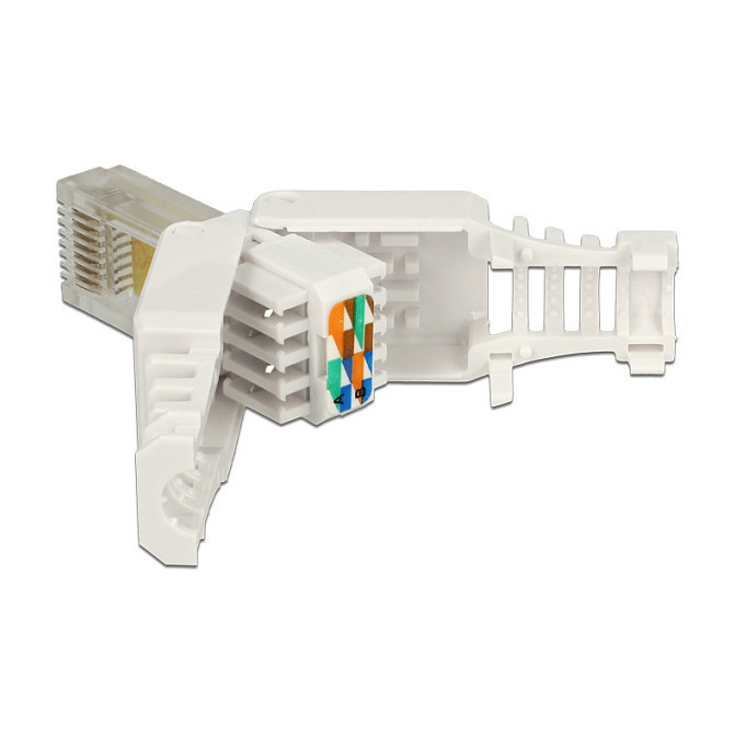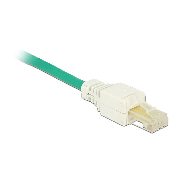 This RJ45 plug by Delock can be used to connect network cables. Installation of the plug to various cable types is tool-free and time-saving."
