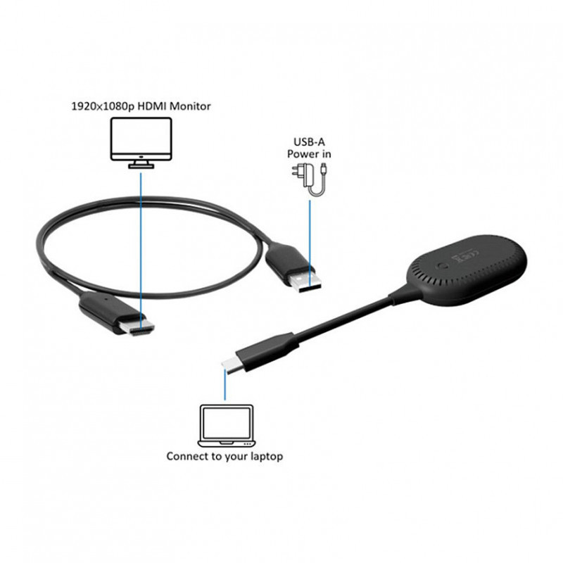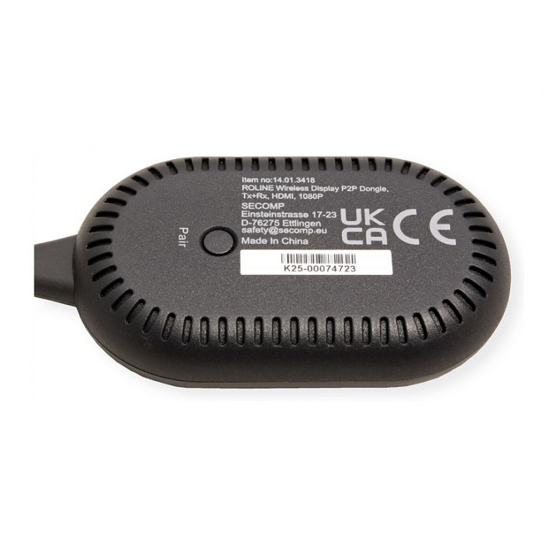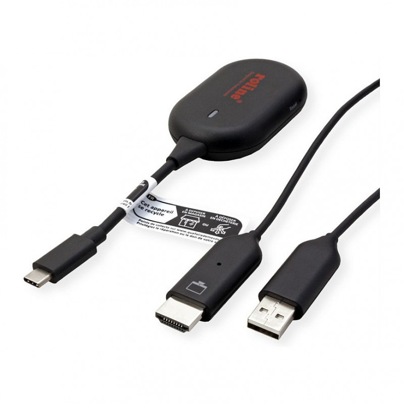 ROLINE Drahtloses P2P-Anzeige-Dongle-Set, Tx+Rx, Wireless USB-C zu HDMI, 1080p, 20 m