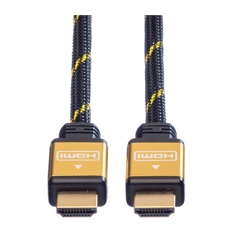 "ROLINE 11.04.5500. Cable length: 1.5 m, Connector 1: HDMI Type A (Standard), Connector 1 gender: Male, Connector 2: HDMI Type A (Standard), Connector 2 gender: Male, Connector contacts plating: Gold, 3D, Maximum resolution: 3840 x 2160 pixels, Audio Return Channel (ARC), Product colour: Black, Gold"\n"ROLINE GOLD HDMI cable with double-sided HDMI connection for connecting an ultrabook, notebook/laptop or PC to a monitor, TV or projector - for screen transmissions in excellent quality with a resolution of up to 3840x2160 @30Hz!