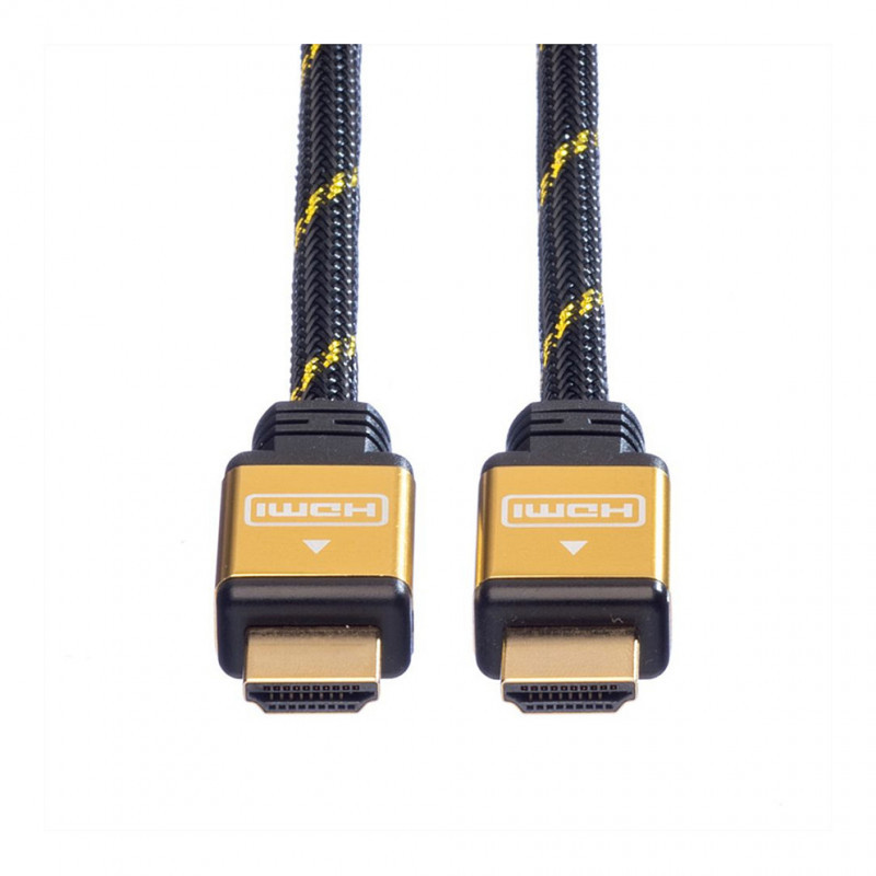 "ROLINE GOLD HDMI High Speed Cable + Ethernet, M/M 3 m. Cable length: 3 m, Connector 1: HDMI Type A (Standard), Connector 1 gender: Male, Connector 2: HDMI Type A (Standard), Connector 2 gender: Male, Connector contacts plating: Gold, Product colour: Black, Gold"\n"- HDMI Ethernet Channel - Adds high-speed networking to an HDMI link, allowing users to take full advantage of their IP-enabled devices without a separate ethernet cable