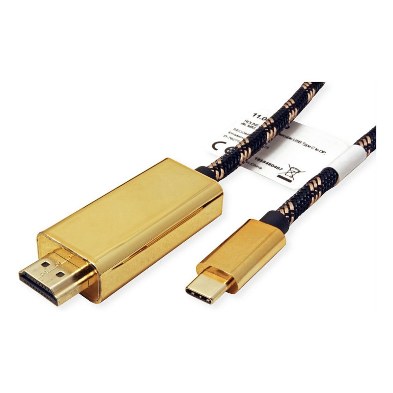 "ROLINE 11.04.5844. Maximum resolution: 3840 x 2160 pixels, Maximum resolution (HDMI): 3840 x 2160 pixels. Product colour: Black, Gold. Quantity per pack: 1 pc(s)"\n"Connect your Macbook, Ultrabook, Notebook/Laptop or PC with USB Type C connector to an HDMI monitor, TV or projector with HDMI - with a maximum resolution of 3840x2160 @60Hz!