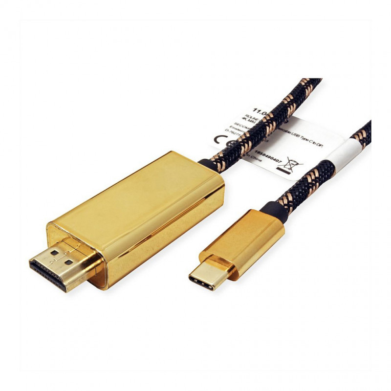 "ROLINE 11.04.5847. Maximum resolution: 3840 x 2160 pixels, Maximum resolution (HDMI): 3840 x 2160 pixels. Product colour: Black, Gold. Quantity per pack: 1 pc(s)"\n"Connect your Macbook, Ultrabook, Notebook/Laptop or PC with USB Type C connector to an HDMI monitor, TV or projector with HDMI - with a maximum resolution of 3840x2160 @60Hz!
