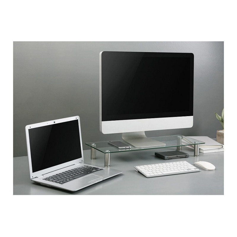 "ROLINE 17023376. Mounting: Freestanding, Maximum weight capacity: 20 kg. Product colour: Transparent"\n"High-quality, height-adjustable glass table with a load capacity of up to 20 kg. There is a thread in the well designes metal feet with which the glass table can be perfectly adjusted for each surface.