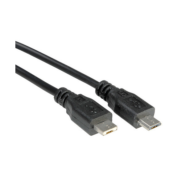 "ROLINE USB 2.0 Cable, Micro A - Micro B, M/M 1.8 m. Cable length: 1.8 m. Connector 1: Micro-USB A, Connector 2: Micro-USB B, USB version: USB 2.0, Connector gender: Male/Male, Product colour: Black"\n"- High quality USB cable with one Micro USB A and one Micro USB B connector