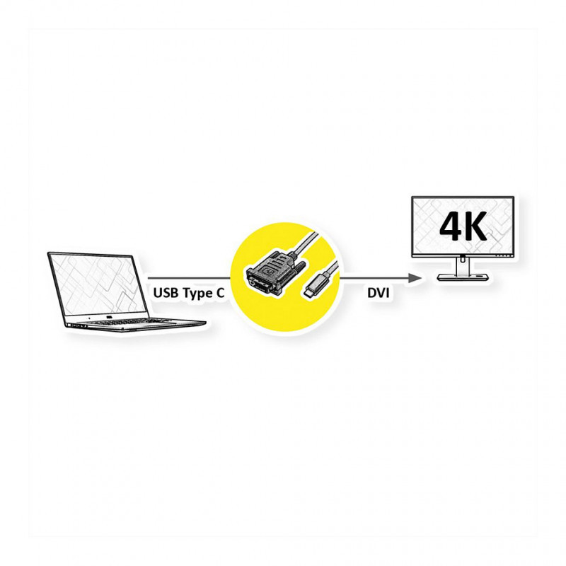 "ROLINE 11045831. Cable length: 2 m, Connector 1: DVI-D, Connector 2: USB Type-C"\n