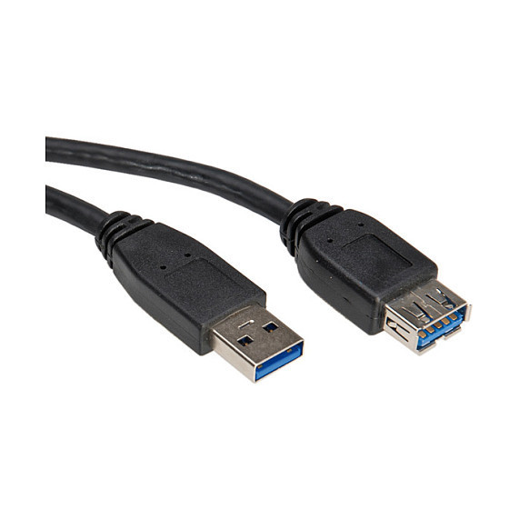 "ROLINE USB 3.0 Cable, A - A, M/F 1.8 m. Cable length: 1.8 m. Connector 1: USB A, Connector 2: USB A, USB version: USB 3.2 Gen 1 (3.1 Gen 1), Connector gender: Male/Female, Product colour: Black"\n"USB 3.0 SuperSpeed cables with high quality and improved shielding for transfer rates of up to 5 Gbit/s. USB 3.0 receptacles are partly compatible with USB 2.0 device plugs for the respective physical form factors. The cables can be used with PCs with the actual type A interface. The new USB 3.0 Type B connectors are not downwards compatible.