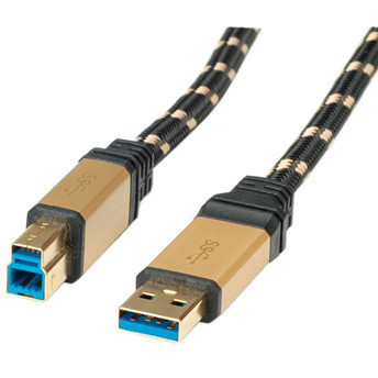 "ROLINE GOLD USB 3.0 Cable, Type A M - B M 3.0 m. Cable length: 3 m. Connector 1: USB A, Connector 2: USB B, USB version: USB 3.2 Gen 1 (3.1 Gen 1), Connector gender: Male/Male, Maximum data transfer rate: 5 Gbit/s, Connector contacts plating: Gold, Product colour: Black, Gold"\n"USB 3.0 SuperSpeed cable with high quality and improved shielding.