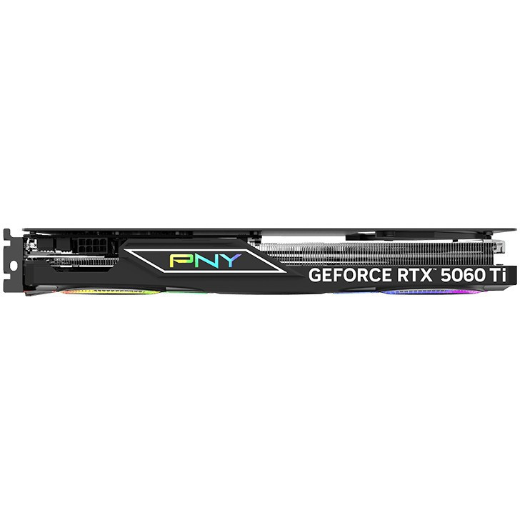 "PNY GeForce RTX 5060 Ti EPIC-X RGB OC. Graphics processor family: NVIDIA, Graphics processor: GeForce RTX 5060 Ti, Processor frequency: 2407 MHz. Discrete graphics card memory: 16 GB, Graphics card memory type: GDDR7, Memory bus: 128 bit. Maximum resolution: 7680 x 4320 pixels. DirectX version: 12 Ultimate, OpenGL version: 4.6. Interface type: PCI Express x8 5.0. Cooling type: Active, Number of fans: 3 fan(s), Illumination colour: Multi"\n"Get game-changing performance with the PNY GeForce RTX™ 5060 Ti, powered by NVIDIA® Blackwell. Game at high frame rates with DLSS 4, supercharge your creativity with NVIDIA Studio, and enable new experiences with the power of AI."