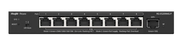 Ruijie Networks RG-ES209MG-P tinklo komutatorius Valdomas L2 2.5G Ethernet (100/1000/2500) Maitinimas per Eternetą (PoE) Juoda
