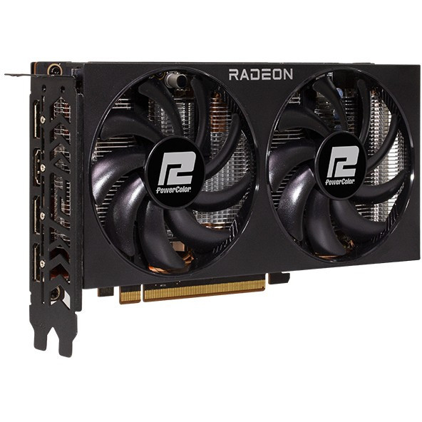 "PowerColor RX 7600 8G-F. Graphics processor family: AMD, Graphics processor: Radeon RX 7600. Discrete graphics card memory: 8 GB, Graphics card memory type: GDDR6, Memory bus: 128 bit. Maximum resolution: 4096 x 2160 pixels. DirectX version: 12.0. Interface type: PCI Express 4.0. Cooling type: Active, Number of fans: 2 fan(s)"\n"AMD Radeon™ RX 7600 Designed for 1080p Gamers
