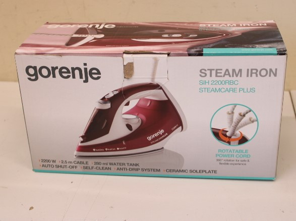 SALE OUT. Gorenje SIH2200RBC Steam iron, Water tank 0,28 L, Continuous steam 30 g/min, Red/White | Gorenje | Steam Iron | SIH2200RBC | Steam Iron | 2200 W | Water tank capacity 280 ml | Continuous steam 30 g/min | Red/White | DAMAGED PACKAGING