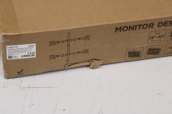 SALE OUT. Logilink BP0046 Quad Monitor Desk Stand 13"-32'' | Logilink | Desk Mount | BP0046 | 13-32 " | Maximum weight (capacity) Carrying capacity of each arm: Max. 8 kg kg | DAMAGED PACKAGING | Black