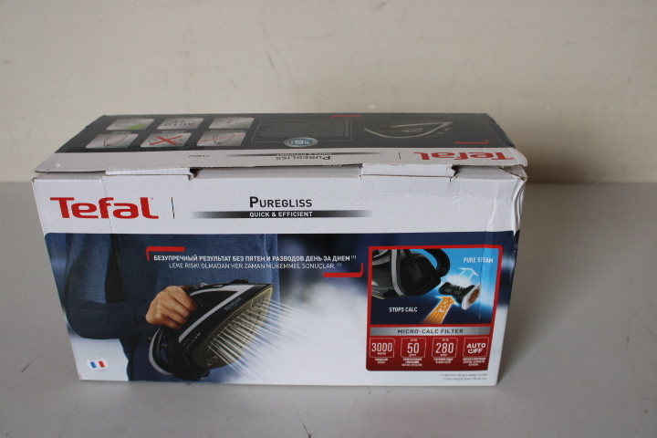 SALE OUT. Tefal FV8062 Puregliss Iron , Black/Grey | TEFAL FV8062 Puregliss | Steam Iron | 3000 W | Water tank capacity 0.27 ml | Continuous steam 50 g/min | Steam boost performance 280 g/min | Black/Grey | DAMAGED PACKAGING, SCRATCHED ON FRONT