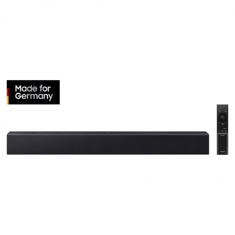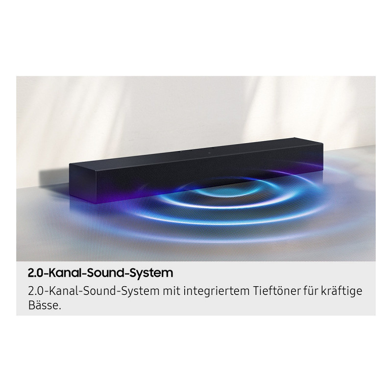 "Samsung B-Series HW-B410GF. Audio output channels: 2.0 channels, Audio decoders: Dolby 2.0, Equalizer modes: Game, Standard, Surround Sound Expansion. Product colour: Black, Audio formats supported: AAC, FLAC, LPCM, MP3, WAV, Consumer Electronics Control (CEC): Anynet+. Connectivity technology: Wired & Wireless. Soundbar power consumption: 20 W, Power consumption (standby): 0.5 W. Width: 641 mm, Depth: 107 mm, Height: 66.5 mm"\n