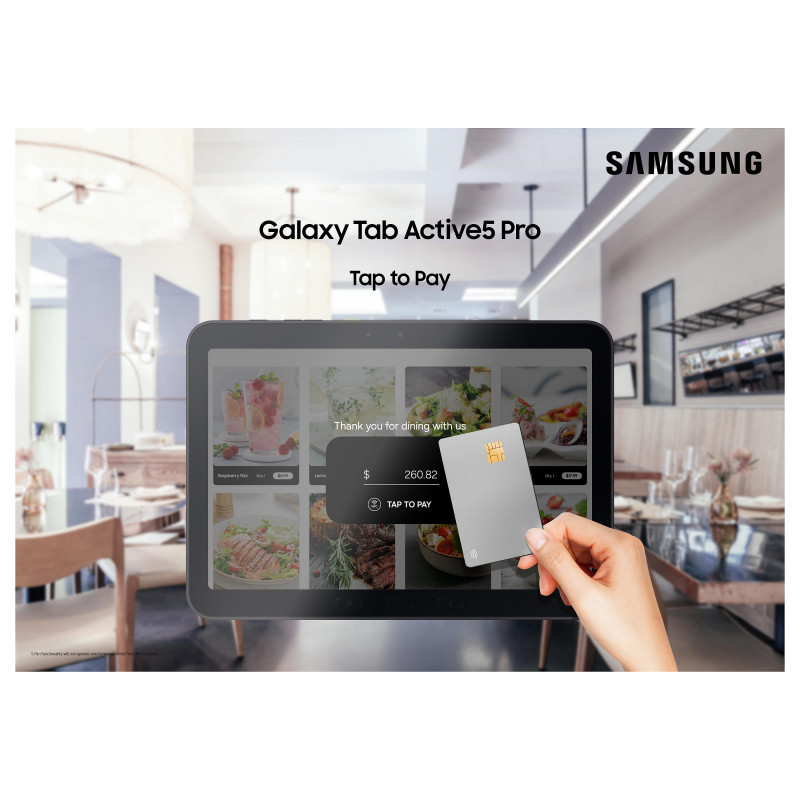 Front Tagging NFC enables simple, tap-based payments right on the front screen of Galaxy Tab Active5 Pro, making transactions easy at kiosks and self-service stations. With Front Tagging NFC functionality, it eliminates the need for extra accessories, helping businesses to operate efficiently.