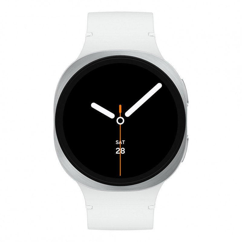 "Samsung SM-L335FZSAEUB. Display diagonal: 3.81 cm (1.5""), Display technology: AMOLED, Display resolution: 480 x 480 pixels, Touchscreen. RAM capacity: 2000 MB, Flash memory: 32 GB. Wi-Fi. GPS (satellite). Battery capacity: 435 mAh. Weight: 34 g. Band colour: White. Operating system installed: Wear OS"\n"Galaxy Watch8 is thinner, lighter and brighter than ever. Reimagined with a new cushion shape and Dynamic Lug bands, the sleek case hugs your wrist for health readings. Longer battery life keeps new fitness tracking features locked in. Plus, enhanced performance powers a reimagined One UI 8 Watch experience.