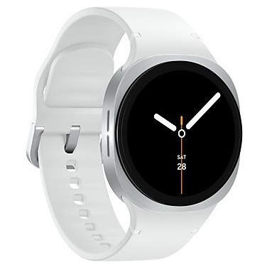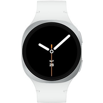 "Samsung Galaxy Watch 8. Display diagonal: 3.3 cm (1.3""), Display technology: AMOLED, Display resolution: 438 x 438 pixels, Touchscreen. RAM capacity: 2000 MB, Flash memory: 32 GB. Wi-Fi. GPS (satellite). Battery capacity: 435 mAh. Weight: 30 g. Band colour: White. Operating system installed: Wear OS"\n"Galaxy Watch8 is thinner, lighter and brighter than ever. Reimagined with a new cushion shape and Dynamic Lug bands, the sleek case hugs your wrist for health readings. Longer battery life keeps new fitness tracking features locked in. Plus, enhanced performance powers a reimagined One UI 8 Watch experience.