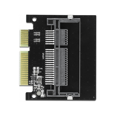"DeLOCK SATA 22 pin male to CFast slot Adapter. Host interface: SATA, Output interface: CFast. Width: 45 mm, Depth: 51 mm, Height: 5 mm. Package type: Box"\n"This adapter by Delock enables the connection of a CFast memory card. The adapter will be installed into the system internally through a SATA 22 pin interface.