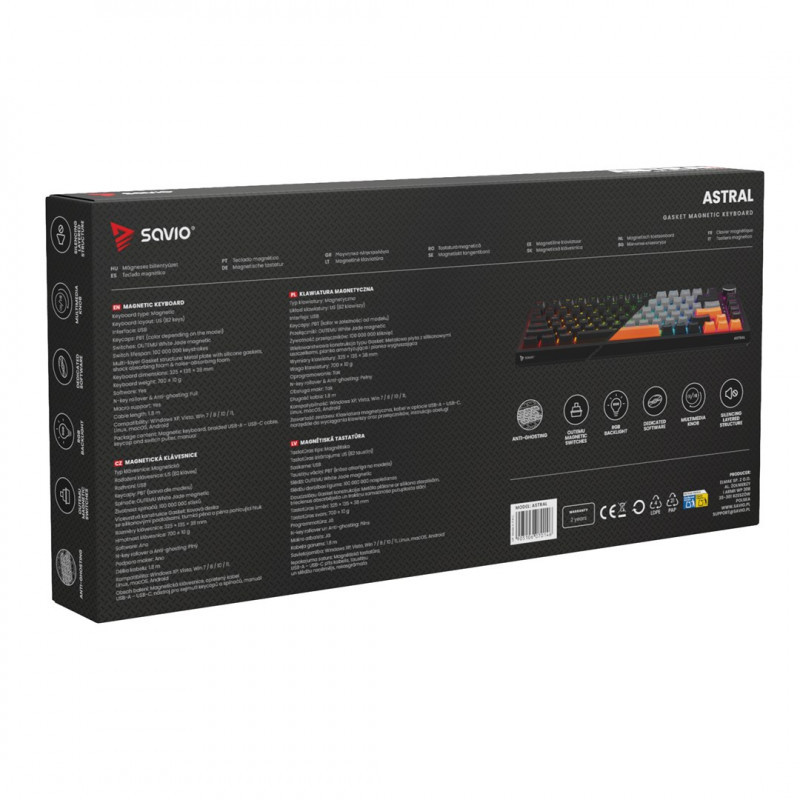 Savio ASTRAL BLACK JADE klaviatūra Žaidimams USB QWERTY JAV tarptautinė versija Juoda