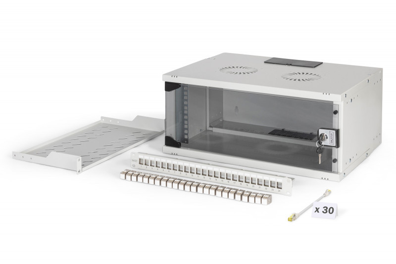 SOMI Networks | 22U, 19″ Network Wall Cabinet | 22U-60/60FPC | Gray | With Front Glass Doors; Unassembled | Depth: 60 cm