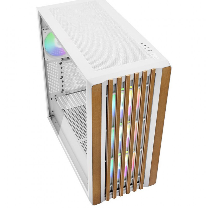 "Sharkoon REBEL C70G RGB. Form factor: Full Tower, Type: PC, Product colour: White, Wood. Front fans installed: 3x 120 mm, Front fans diameters supported: 120,140 mm, Side fans diameters supported: 120 mm. Supported HDD sizes: 2.5,3.5"", SSD form factor: 2.5"". Width: 230 mm, Depth: 479 mm, Height: 495 mm"\n"With its elegant wood design on the front panel and screwless tempered-glass side panel, the Rebel C70G RGB adds a stylish touch to any gaming room, living room or study. Apart from a striking appearance, modular installation options allow space for up to eleven 120 mm fans or two radiators. And along with perforated surfaces in and around the case, an optimal cooling performance is ensured, even for high-end setups. In addition, the continued efficiency of the PC case is supported by its future-proof USB-C and TRRS connections.