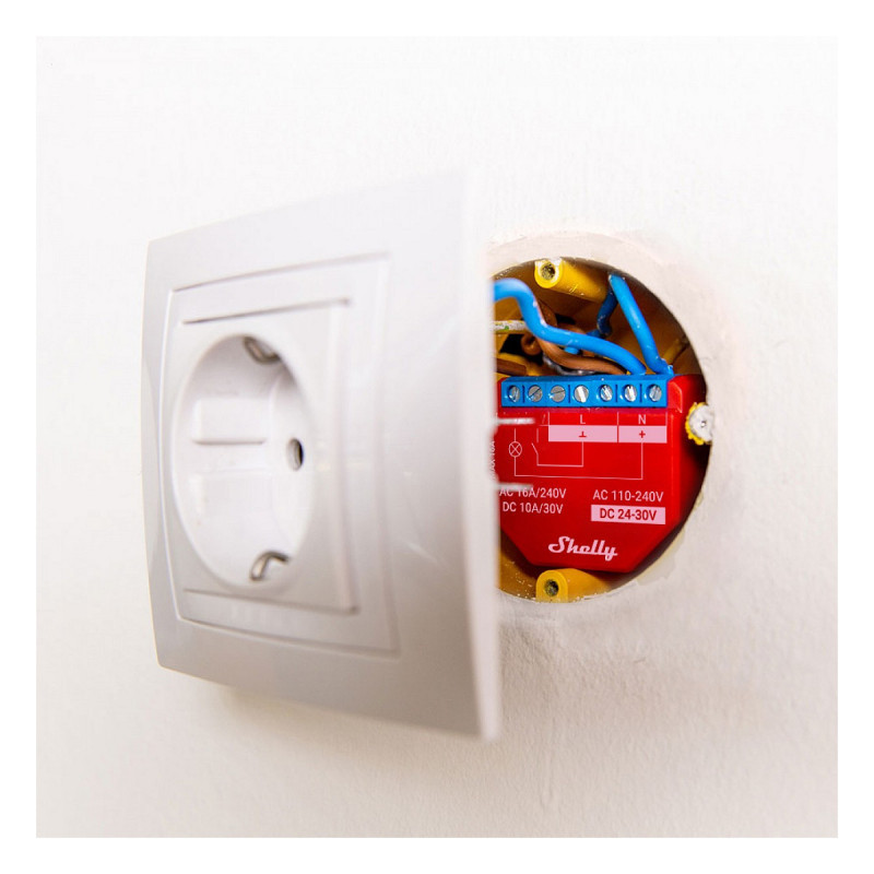 "Shelly Plus 1PM. Type: Smart switch, Number of poles: 1P, Connectivity technology: Wireless. AC input voltage: 110 - 230 V, DC voltage range: 24 – 30, AC input frequency: 50 - 60 Hz. Width: 38 mm, Depth: 42 mm, Height: 17 mm"\n"Control and measure power consumption for wide range of home appliances and office equipment (lights, power lines, security systems, heating radiators, air conditioners, etc.) from anywhere with the smallest WiFi-operated relay switch, with Bluetooth connection
