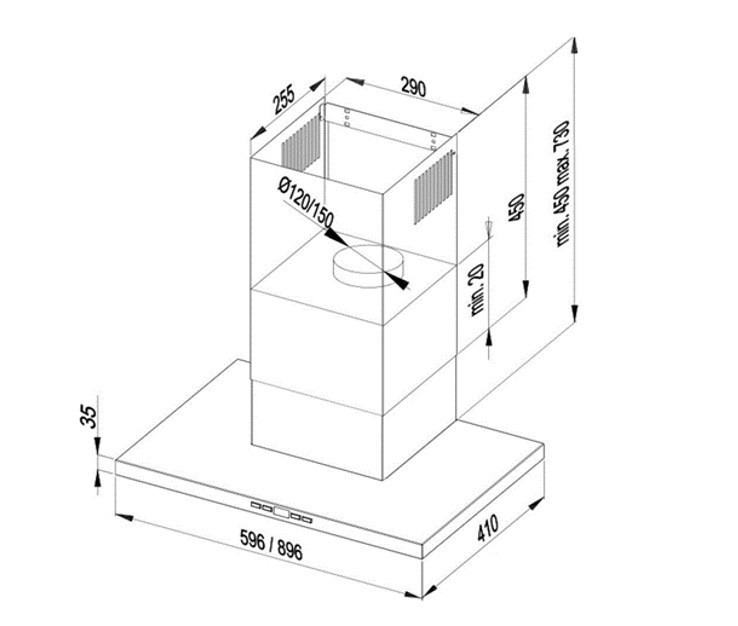 Sieninis kamino gaubtas MAAN Siena Soft 60 305 m3/h, juodas