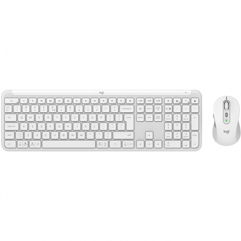 "Logitech 920-012491. Keyboard form factor: Full-size (100%). Keyboard style: Straight. Connectivity technology: Wireless, Device interface: RF Wireless + Bluetooth, Keyboard key switch: Scissor key switch, Keyboard layout: QWERTY, Recommended usage: Office. Product colour: White. Mouse included"\n