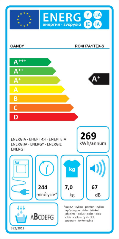 Candy | Dryer Machine | RO4 H7A1TEX-S | Energy efficiency class F | Front loading | 7 kg | LCD | Depth 46.5 cm | Wi-Fi | White
