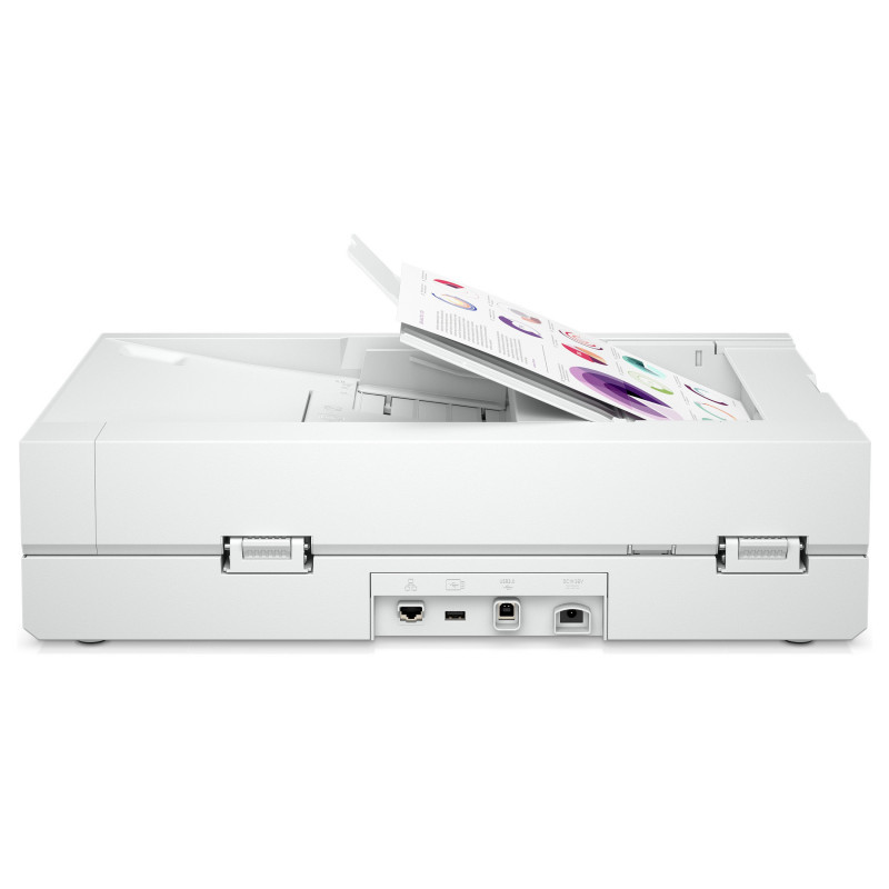 "HP Scanjet Enterprise Flow N6600 fnw1. Maximum scan size: 216 x 356 mm, Optical scanning resolution: 1200 x 1200 DPI, ADF scan speed (b/w, A4): 50 ppm. Scanner type: Flatbed & ADF scanner, Product colour: White, Display diagonal: 7.11 cm (2.8""). Sensor type: CIS, Daily duty cycle (max): 8000 pages, Scan file formats: BMP, CSV, DOC, DOCX, JPEG, PDF, PNG, RTF, TIFF, TXT, XLS, XLSX, XML. Auto document feeder (ADF) input capacity: 100 sheets. Maximum ISO A-series paper size: A4, Scanning media types supported: Envelopes, Labels, Photo paper, Plain paper, ISO A-series sizes (A0...A9): A4, A5, A6"\n"Professional workteams that need a network connected, fast, versatile, full-featured scanning for quick, ad-hoc tasks and routine jobs. Either from the automatic document feeder or Legal-size flatbed glass.