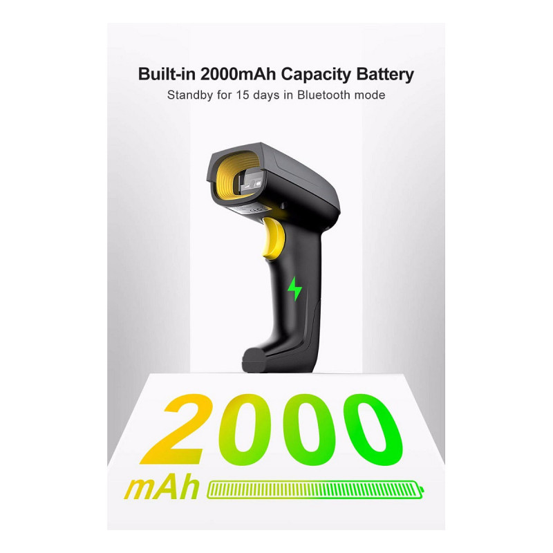 "Inateck BCST-52. Type: Handheld bar code reader, Scanner type: 1D/2D, Linear (1D) barcodes supported: Code 11, Code 128, Code 39, Code 93, EAN 128, Interleaved 2 of 5, MSI, Matrix 2 of 5, Standard 2.... Connectivity technology: Wired & Wireless, Standard interfaces: Bluetooth, USB. Product colour: Black, Grey, Yellow, Housing material: Acrylonitrile butadiene styrene (ABS), Polycarbonate (PC), Thermoplastic urethane (TPU). Power source type: Battery, Battery capacity: 2000 mAh, Input voltage: 5 V. Weight: 84 g, Width: 47 mm, Depth: 27 mm"\n"1D & 2D Barcode Scanner: The scanner can quickly read various kinds of 1D and 2D barcodes, including the mainstream 2D and all 1D barcodes.