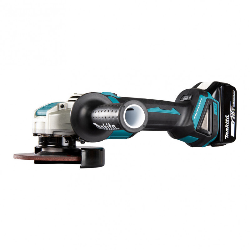 "Makita DGA521ZX1. Product colour: Black, Blue, Silver, Motor type: Brushless motor. Grinding disc diameter: 12.5 cm, Idle speed (max): 8500 RPM, Cutting depth (max): 2.22 cm. Power source: Battery, Battery voltage: 18 V. Weight: 1.7 kg, Width: 140 mm, Height: 375 mm"\n