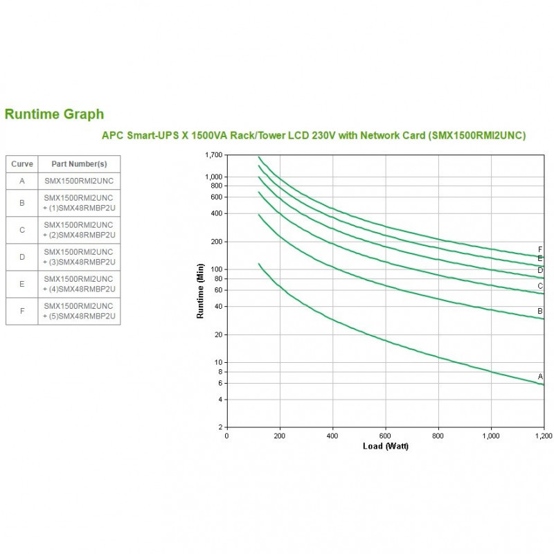 You can easily increase the number of minutes that the APC SMX UPS can independently supply emergency power by connecting external battery packs (SMX48RMBP2U).