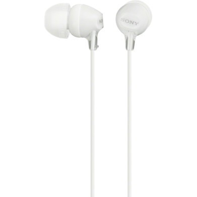 "Sony MDR-EX15LP. Product type: Headphones. Connectivity technology: Wired. Recommended usage: Music. Headphone frequency: 8 - 22000 Hz. Cable length: 1.2 m. Weight: 3 g. Product colour: White"\n"Enjoy high-resolution treble and midrange with powerful bass produced from Sony MDR-EX15LP's high power neodymium magnets. Comes with cord slider to prevent cord from tangling.