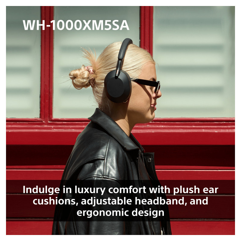 From airplane noise to people’s voices, our WH-1000XM5SA wireless headphones with multiple microphone noise cancelling keep out more high and mid frequency sounds than ever. And with Auto NC Optimizer, noise cancelling is automatically optimised based on your wearing conditions and environment.