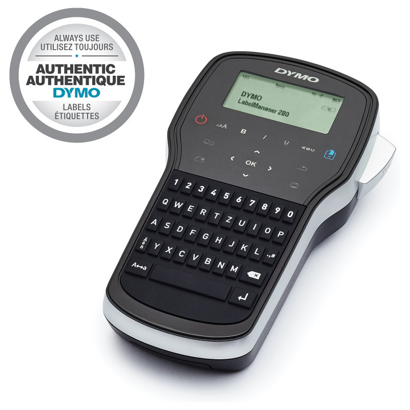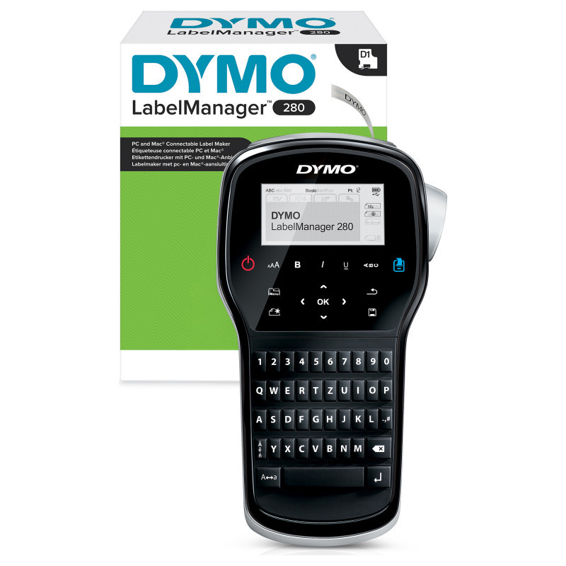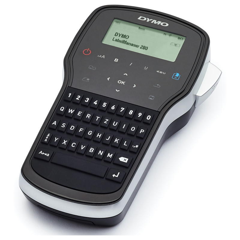"DYMO LabelManager ™ 280 QWERTZ. Print technology: Thermal transfer, Maximum resolution: 180 x 180 DPI, Print speed: 15 mm/sec. USB port. Keyboard layout: QWERTZ. Tape type: D1. Supported paper width: 6, 9, 12 mm. Product colour: Black, Silver"\n"CREATE LABELS FAST WITH SMART KEYS