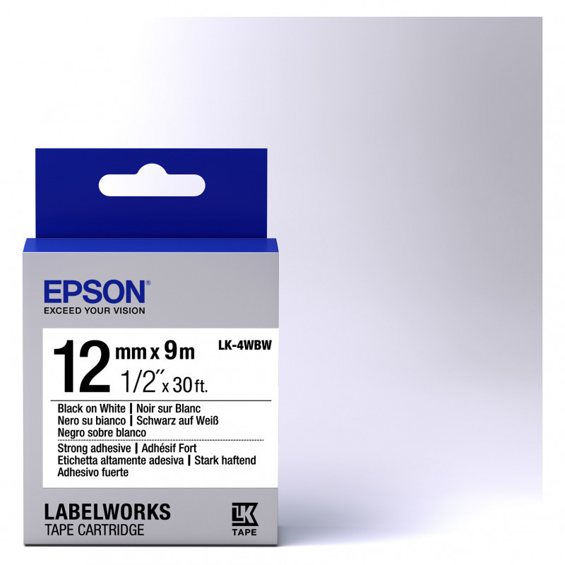 Epson LabelWorks LK-4WBW - Stark klebend - Schwarz auf Weiß - Rolle (1,2 cm x 9 m)